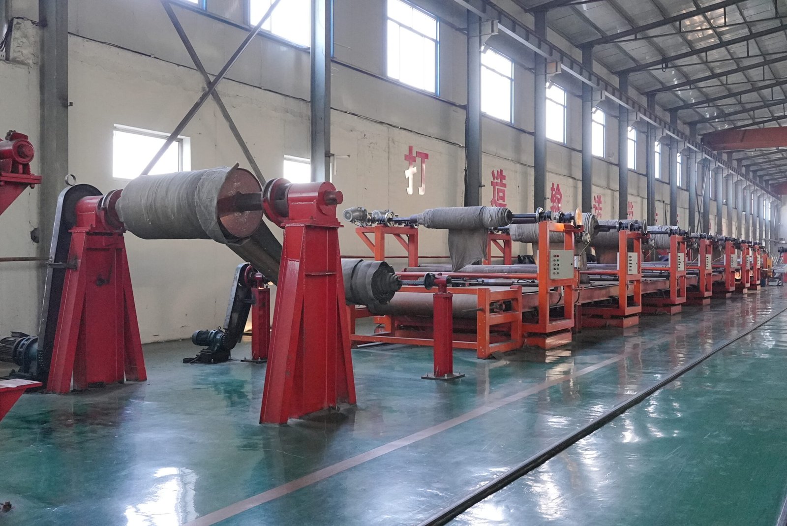 This equipment applies heat and pressure to cure the belt carcass, bonding rubber and reinforcement for final strength and durability.